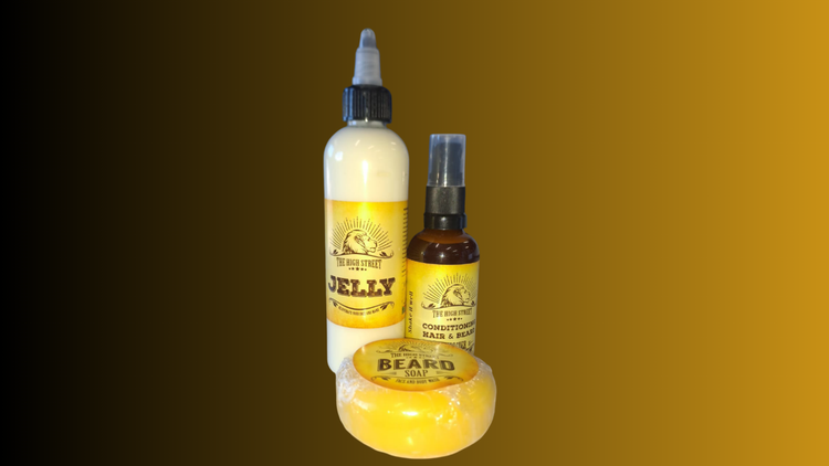 Beard Jelly (Squeeze Bottle): The flagship styling product of the kit. Thicker than a traditional oil but lighter than a balm, this jelly provides an all-day hold, deep hydration, and a healthy shine without a greasy residue.